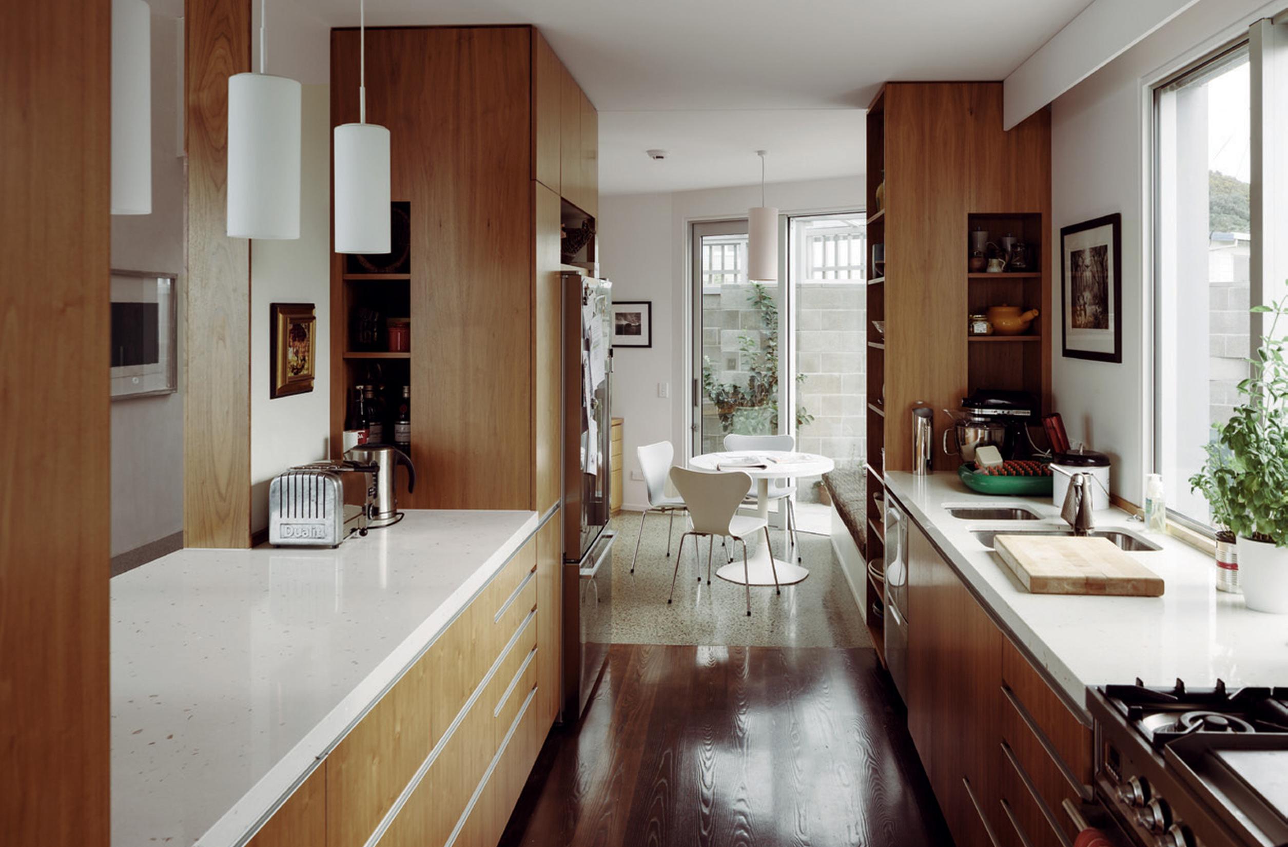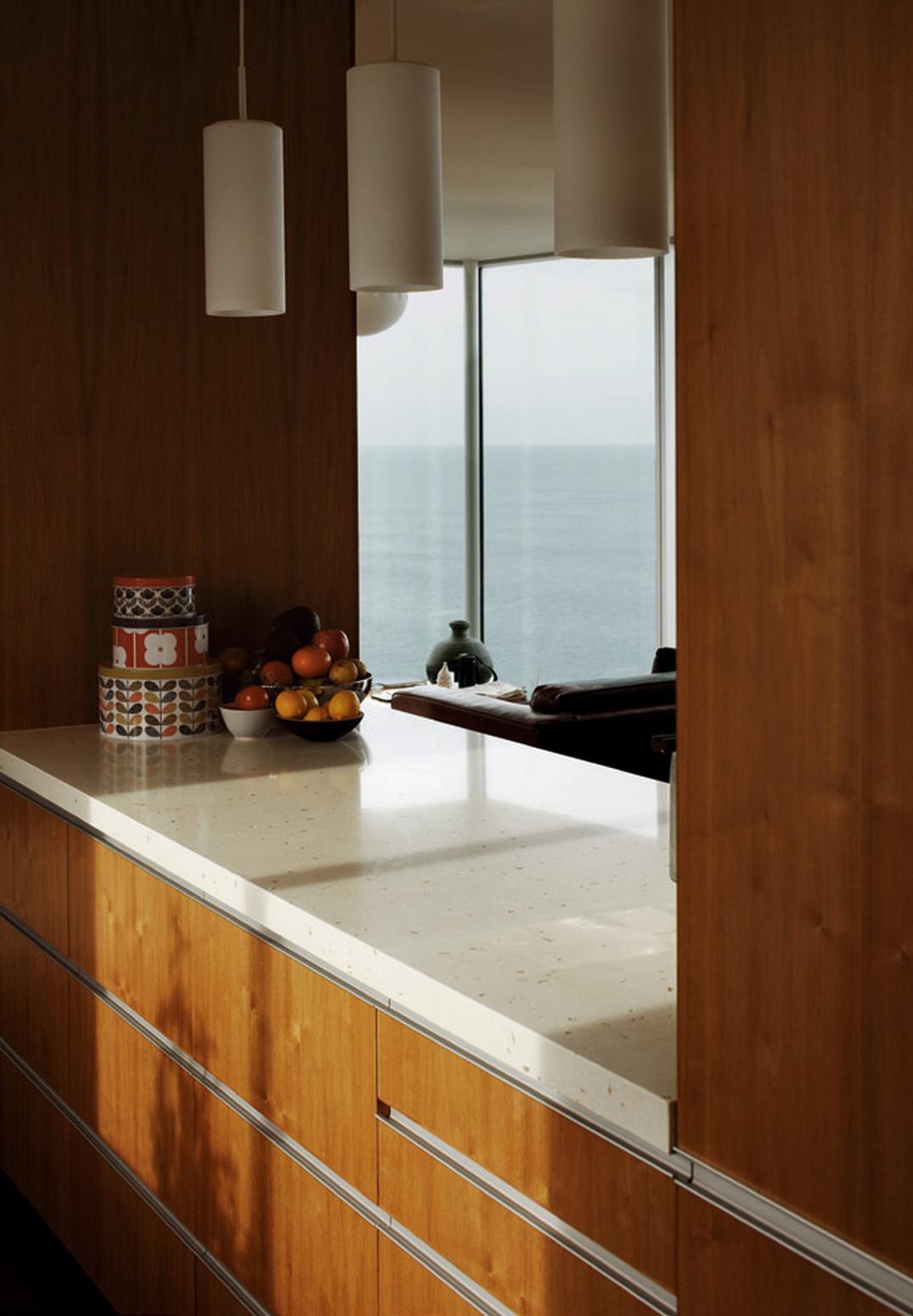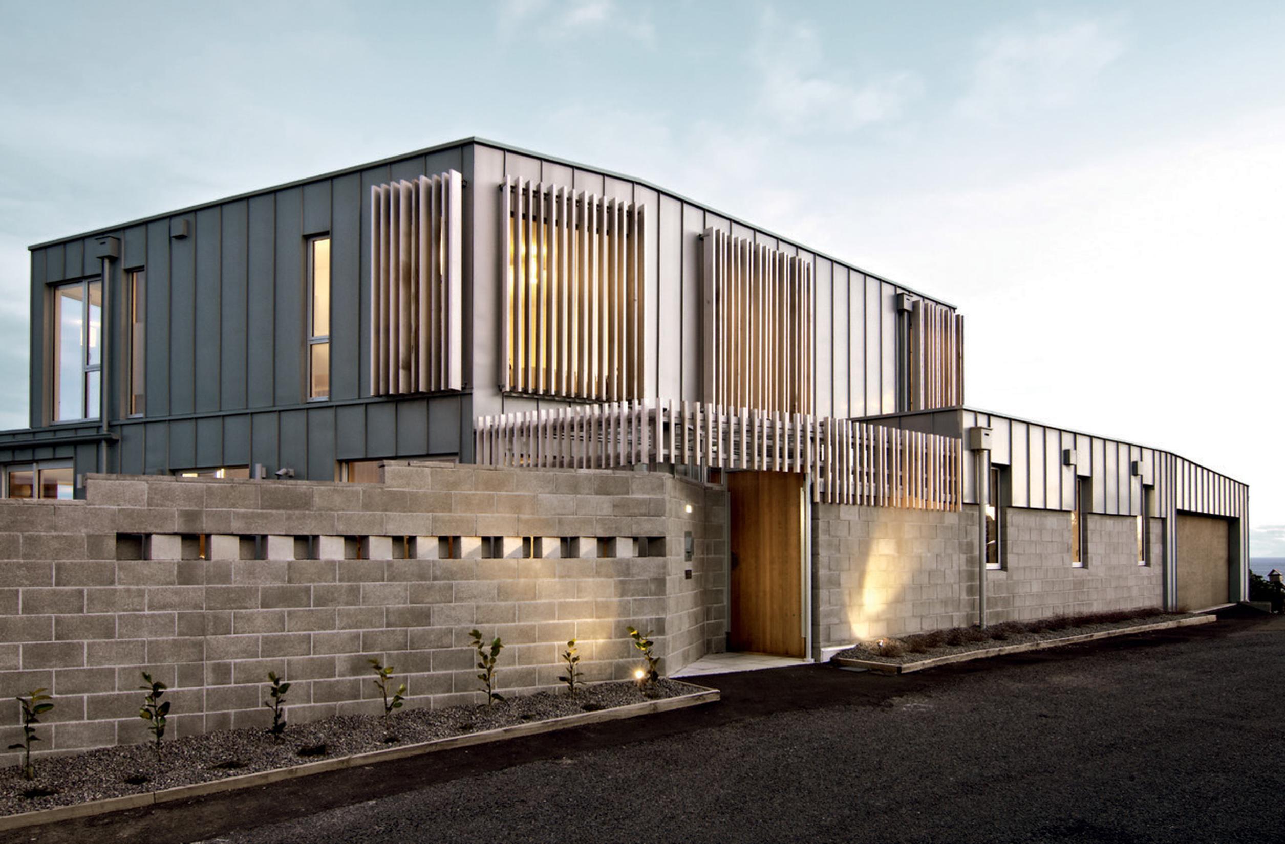 An appreciation of the weather is seen in small details: zinc was selected as cladding for its low maintenance, durability and weathertightness in the face of extreme salt laden winds from the south; the covered vestibule that allows wind-ravaged visitors to let themselves in through the exterior gate and wait, sheltered from the inevitable southerly, for someone to answer the door. On days when the sun streams in, the concrete of this outdoor room is heated by the sun, and, as it is a single pad running into the house, the glasshouse-like heat warms the house. And rather than a deck, Tennent Brown designed the house to the edge with large picture windows making the view as immediate as if you were standing on a deck. The difference is, of course, that in this house, you are also warm and sheltered while you watch the weather roll towards you from the horizon.